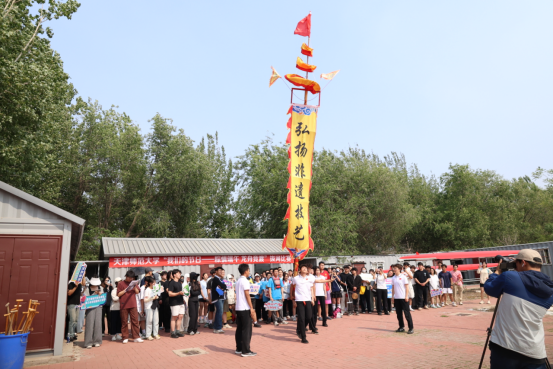 活动伊始,精彩绝伦的舞狮和中幡非遗表演惊艳亮相。灵动的舞狮身姿矫健,在鼓点声中翻腾跳跃,寓意吉祥如意;中幡表演者们则以精湛技艺,将沉重的中幡舞得上下翻飞、惊险迭出,引得现场观众阵阵惊叹与喝彩。随后,与会领导为龙舟点睛祈福,朱砂轻点,赋予龙舟以生命与活力,也寄托了对参赛队伍的美好祝愿。纪德奎为第一场比赛鸣枪发令,拉开了龙舟拔河比赛的帷幕。